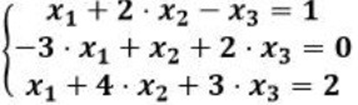Дана система уравнений {x₁ + 2 ⋅ x₂ − x₃ = 1, −3 ⋅ x₁ + x₂ + 2 ⋅ x₃ = 0, x₁ + 4 ⋅ x₂ + 3 ⋅ x₃ = 2 Решая уравнение методом Гаусса, какие действия необходимо совершить?