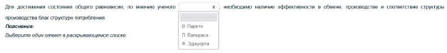 Выберите один ответ в раскрывающемся списке.
