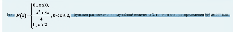 Если - функция распределения случайной величины X, то плотность распределения f(x) имеет вид...