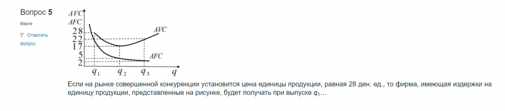 Таким образом, чтобы точно ответить на вопрос, необходимо знать издержки на единицу продукции при выпуске q1. Если они меньше 28 ден. ед., фирма получит прибыль, если больше — убытки.
