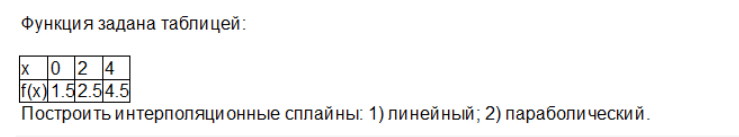 Построить интерполяционные сплайны: 1) линейный; 2) параболический.