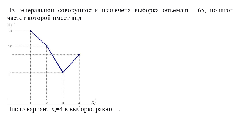 выборка объема n=65, полигон частот которой имеет вид. Число вариант x=4 в выборке равно