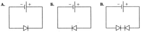 Чтобы определить, в каком случае сила тока в цепи будет иметь минимальное значение, необходимо рассмотреть, как полупроводниковые диоды влияют на электрическую цепь в зависимости от их включения.