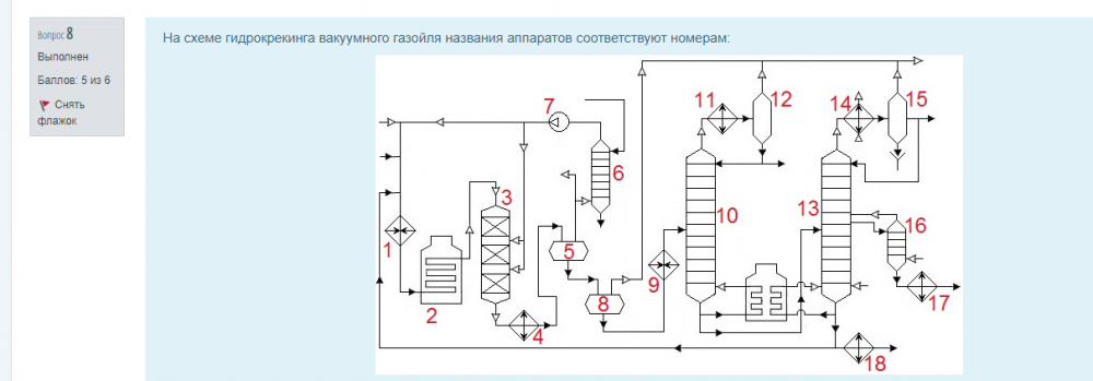 На схеме гидрокрекинга вакуумного газойля названия аппаратов соответствуют номерам: