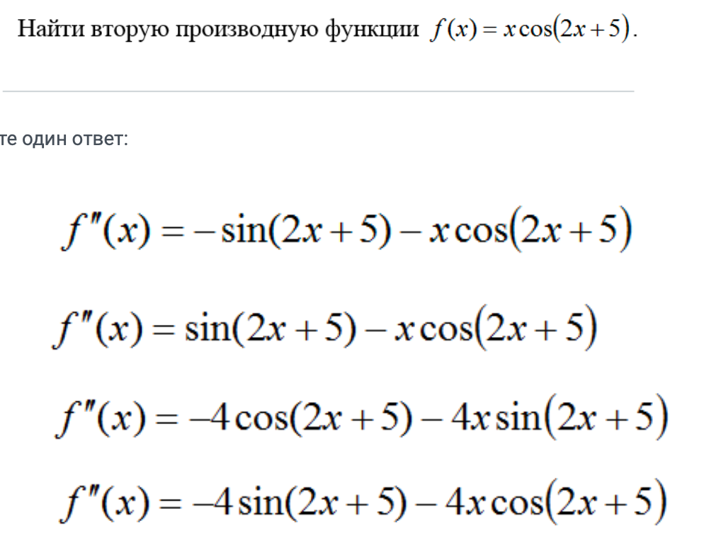 Ответ: Вторая производная функции f(x) = x cos(2x + 5) равна: