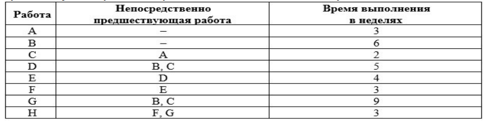 Сначала нужно составить список всех восьми работ, указать их продолжительность и определить, какие из них предшествуют другим.