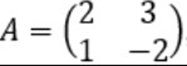 A = ((2, 3), (1, -2))
