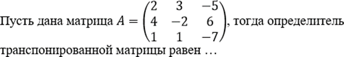 Пусть дана матрица A = 4 -2 А тогда определитель транспонированной матрицы равен ...