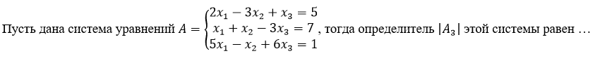 Пусть дана система уравнений А= 2x-3x+x=5 тогда определитель А3 этой системы равен...