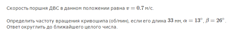 Определить частоту вращения кривошипа (об/мин), если его длина 33 мм, а = 13° B= 26°.