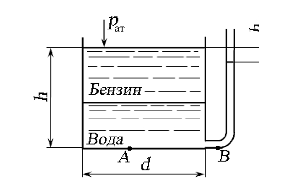 Так как уровень воды в пьезометре ниже уровня бензина, можно записать уравнение давления: