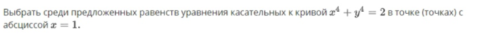 Выбрать среди предложенных равенств уравнения касательных к кривой в точке (точках) с абсциссой x = 1.