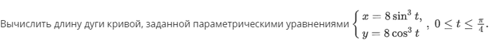 Вычислить длину дуги кривой, заданной параметрическими уравнениями