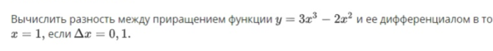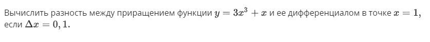Вычислить разность между приращением функции и ее дифференциалом в точке