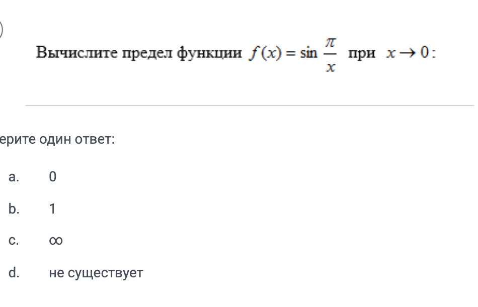 Вычислите предел функции f (x) = sin π/x при x → 0