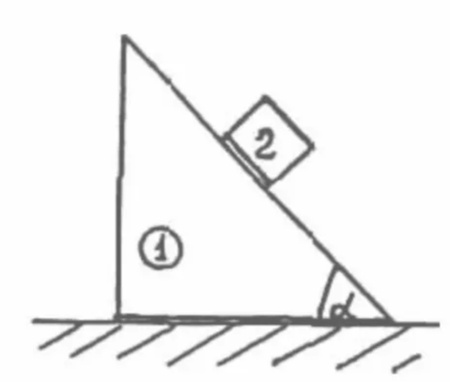 - Призма движется с ускорением a1. Из закона Ньютона: m1 * a1 = m2 * a2 * cos(α).