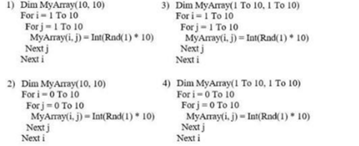 Если заполнить массив 10х10 случайными целыми числами от 1 до 10, получим запись: …