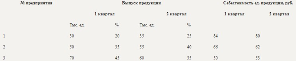 Имеются следующие данные о выпуске предприятиями однородной продукции.