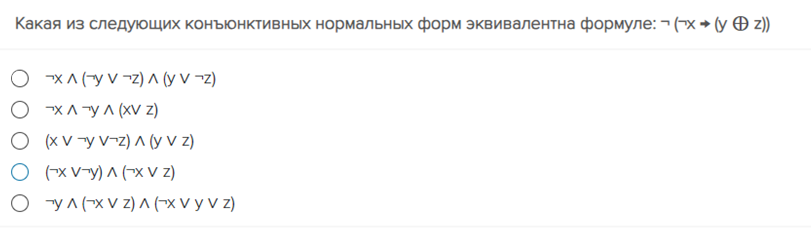 Какая из следующих конъюнктивных нормальных форм эквивалентна формуле: - (-х + (у Ф z))