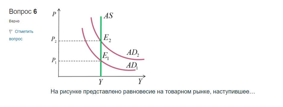 На рисунке представлено равновесие на товарном рынке, наступившее…