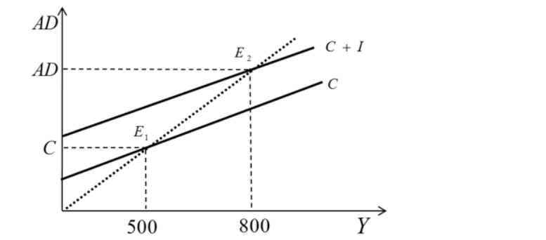 Рост равновесного дохода с 500 ден. ед. до 800 ден. ед. обусловлен увеличением автономных инвестиций на…