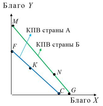 Для того чтобы ответить на вопрос о коэффициенте трансформации и альтернативной стоимости производства блага Х в двух странах, необходимо рассмотреть, что такое кривая производственных возможностей (КПВ) и как она работает.