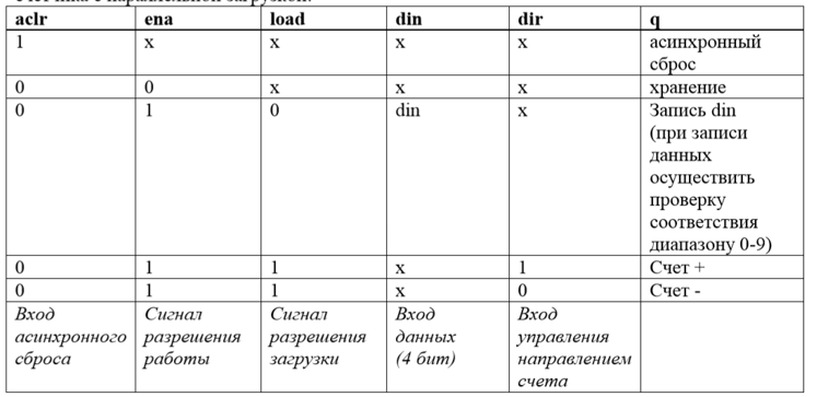 Таким образом, данный код реализует реверсивный 4-разрядный двоично-десятичный счетчик с параллельной загрузкой, который может быть использован в различных цифровых устройствах.