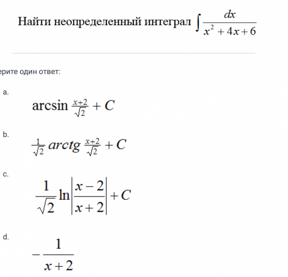 Найти неопределенный интеграл ∫dx/x2+4x + 6