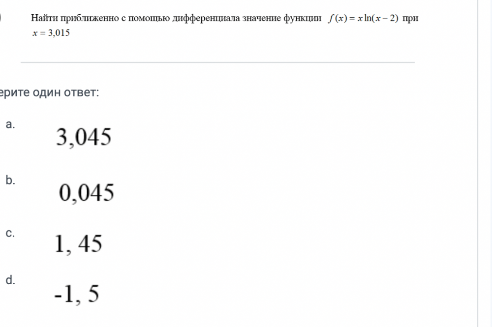 Найти приближенно с помощью дифференциала значение функции f (x) = x ln(x-2) при x = 3,015