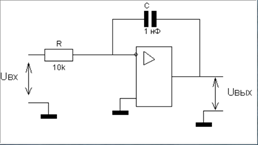 где R — сопротивление, C — емкость интегратора.