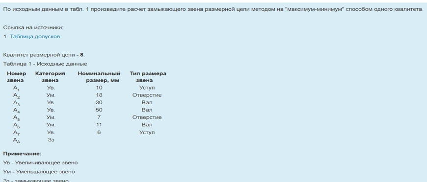 Шаг 1: Определение исходных данныхСначала вам нужно ознакомиться с данными, представленными в таблице 1. Важно понимать, какие размеры и допуски указаны для каждого элемента размерной цепи.