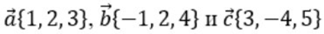Расположите длины векторов a{1, 2, 3}, b{−1, 2, 4} и c{3, −4, 5} в порядке возрастания: