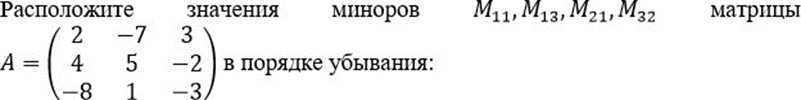 Расположите значения Миноров М11, М13, М21, М32 матрицы A=45-2 в порядке убывания: