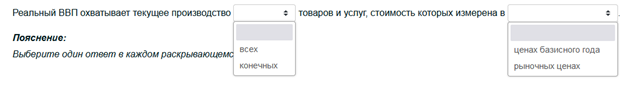 Выберите один ответ в каждом раскрывающемся списке.