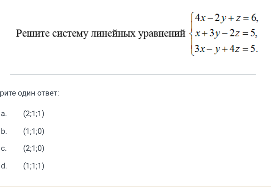 мы будем использовать метод подстановки или метод Гаусса. Начнем с первого уравнения и выразим одну переменную через другие.