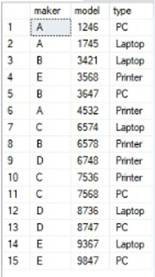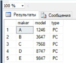 С помощью оператора SELECT был выполнен запрос, где в таблице найдены производители, выпускающие компьютеры. Выберите правильный запрос для вывода результата, который представлен на рисунке ниже