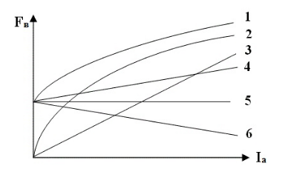 Укажите номер зависимости МДС возбуждения от токового режима нагружения ТЭД сериесного возбуждения: