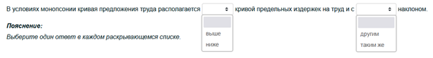 В условиях монопсонии кривая предложения труда располагается ниже кривой предельных издержек на труд и с положительным наклоном.