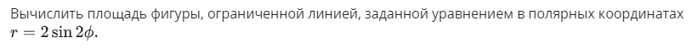 Вычислить площадь фигуры, ограниченной линией, заданной уравнением в полярных координатах