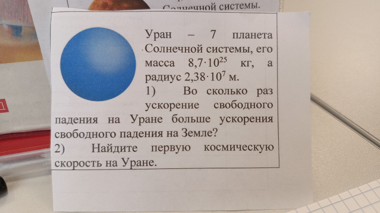 Для решения задачи сначала найдем ускорение свободного падения на Уране и на Земле, а затем определим, во сколько раз ускорение на Уране больше, чем на Земле. Также мы найдем первую космическую скорость на Уране.