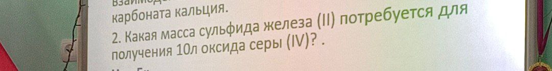 2. Какая масса сульфида железа (II) потребуется для получения 10л оксида серы (IV)?