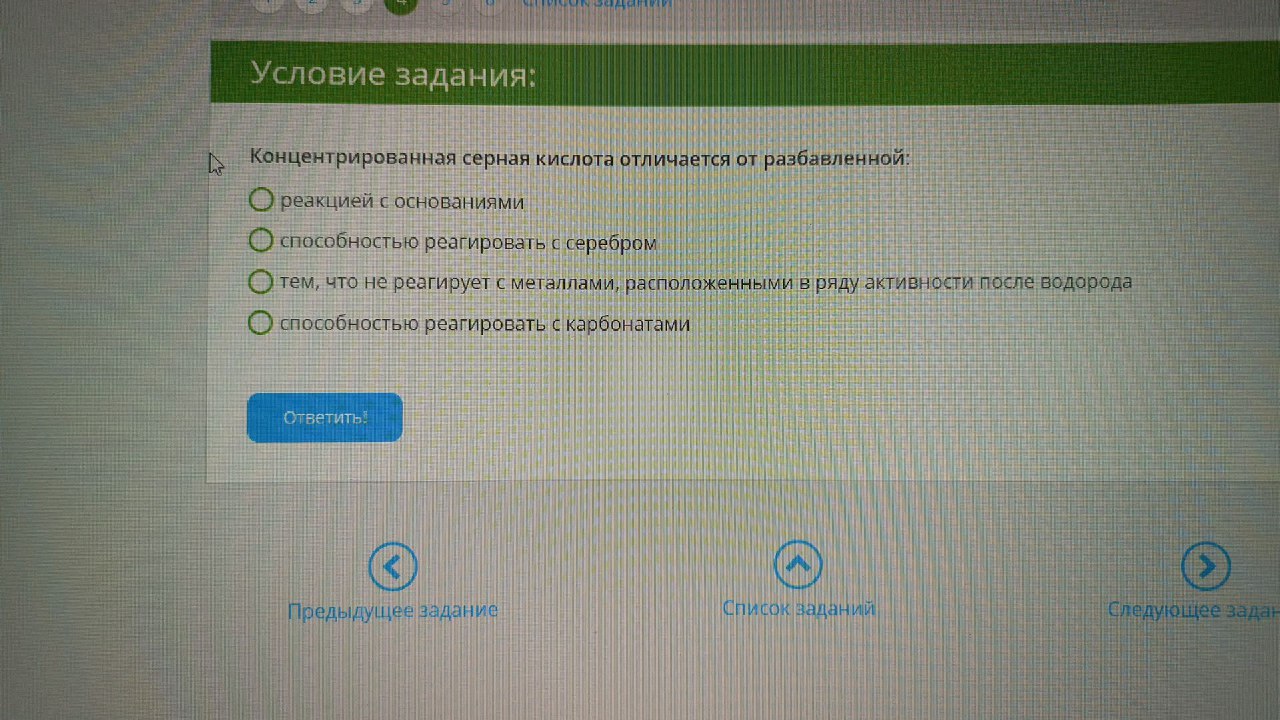 Способностью реагировать с серебром.Концентрированная серная кислота (H2SO4) действительно отличается от разбавленной в нескольких аспектах. Давайте рассмотрим каждый из предложенных вариантов: