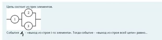 Событие «выход из строя всей цепи» = A1 ∩ A2 ∩ A3Где: