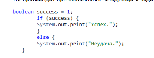 success была объявлена как тип, который не может хранить целочисленные значения, например, boolean в Java или C#. В таком случае компилятор выдаст ошибку, так как мы пытаемся присвоить значение, несовместимое с типом переменной.success получает значение, которое указывает на успешное выполнение операции. Например, если success - это логическая переменная, то она может принимать значение true.success может получить значение, указывающее на неудачу, например, false.success и как она обновляется в зависимости от результатов операций.Таким образом, для точного ответа необходимо знать, как именно объявлена переменная success и какой код выполняется. Если есть возможность, предоставьте больше информации о коде, чтобы можно было дать более точный ответ.