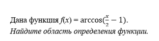 Дана функция (х) = arccos(-1). Найдите область определения функции.