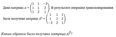 Дана матрица А = 1 была получена матрица АТ = 1 2