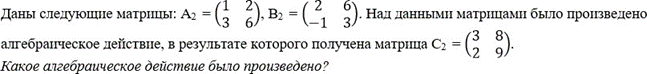 Над данными матрицами было произведено- алгебраическое действие, в результате которого получена матрица С2 = Какое алгебраическое действие было произведено?