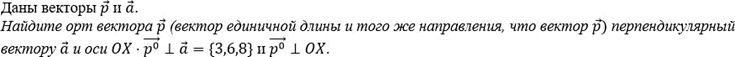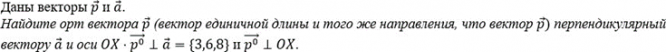 Найдите орт вектора р (вектор единичной длины и того же направления, что вектор p) перпендикулярный вектору а и оси ОХp 1 = {3,6,8} про 10Х.