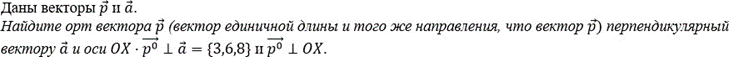 Таким образом, орт вектора р, который перпендикулярен вектору а и оси OX, имеет координаты {0, -0.8, 0.6}.