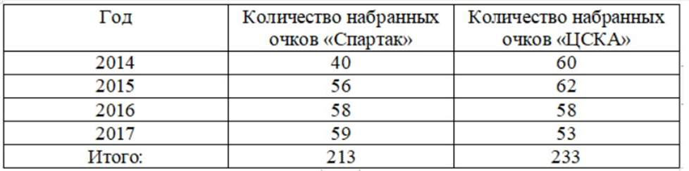 Таким образом, на основании приведенной информации можно сделать вывод, что команда «Спартак» действительно показывает ухудшение результатов за четырехлетний период по сравнению с командой «ЦСКА». Это подтверждается как меньшим количеством очков, так и меньшим приростом очков.